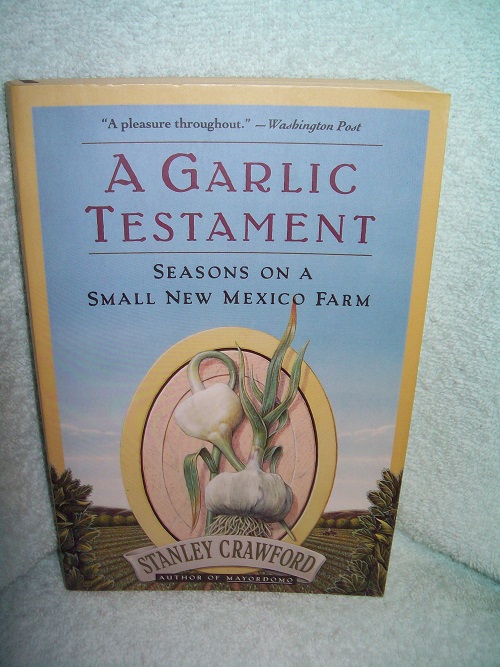 HarperPerennial, New York, 1993, 1st pr thus. ISBN 0-06-098121-0. Trade soft cover, 241 pages including Sources. Very good; wraps show very light edge and cover wear, binding sound with a very slight lean; remainder mark on top edge; interior clean and unmarked with tanned pages. ‘From his farm high in the Sangre de Cristo mountains, the award-winning author of Mayordomo explores the intimate, exhilarating relationship that grows up between a farmer and the earth that slowly yields to his labors. Threaded with the history and culture of a plant prized since ancient times, A Garlic Testament examines the vivid mysteries of earth, wind, water, bulb, and seed. This is soul food not just for gardeners, but for all who hunger after a way of life that nourishes both body and spirit.’ (from rear wrap)