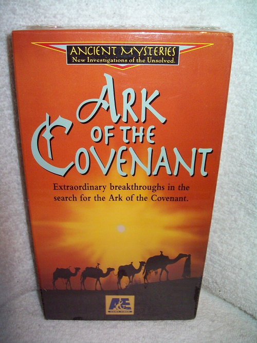 A & E, 1994, NTSC, VHS video tape, Colour, approx. playing time of 50 minutes; Documentary; Ancient Mysteries series. ISBN 1-56501-250-X. Still in shrink wrap. ‘Legend has it that the original Ten Commandments handed down from God to Moses were placed inside an ark in Jerusalem. But where is the ark today? This exciting search for the Ark of the Covenant travels to ancient Palestine to dig for answers. There, historic illustrations shed light on the date of the Ark’s last sighting in 587 B.C. The trail next leads to wondrous artifacts that bear witness to mankind’s obsession with the Ark and its coveted contents. As shifting sands reveal fresh scientific evidence, the program hastens to Ethiopia, where deep inside an almost mystical cave, new answers are uncovered.’ (from rear box)