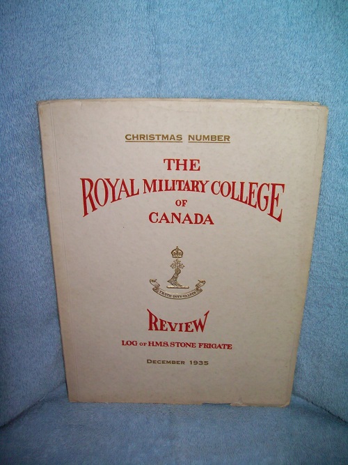 Royal Military College of Canada, Kingston, ON, December 1935, No. 32, Vol. XVI. Professor W. R. P. Bridger, Editor-In-Chief. Large soft cover, 84+ pages. Cream card covers with gold and red lettering on front. Wraps have edge wear with small tears and small losses, light soil, rubs and age-toning. Binding sound. Interior clean and unmarked. Illustrated with black & white photos; numerous ads from the era. Graduating class year book.