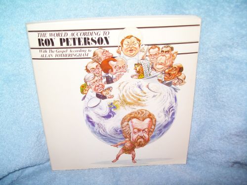 Description Douglas & McIntyre, Vancouver, BC, 1979. ISBN 0-88894-246-X. Large, square soft cover, 168 pages including Acknowledgements. Illustrated wraps show very light edge and spine end wear, a bit of cover wear, small corner creases; binding sound. Colour frontis; interior clean and unmarked with black & white cartoons/illustrations; two straightened lower corner bends; bit of age spotting on lower page block. ‘Roy Peterson … has savaged enough politicians to have earned him a world-wide reputation … Allan Fotheringham … the man called “the greatest guff remover and cob-web blower in Canadian journalism” … Time called him “the most consistently controversial columnist in Canadian journalism” …’ (from rear wrap)