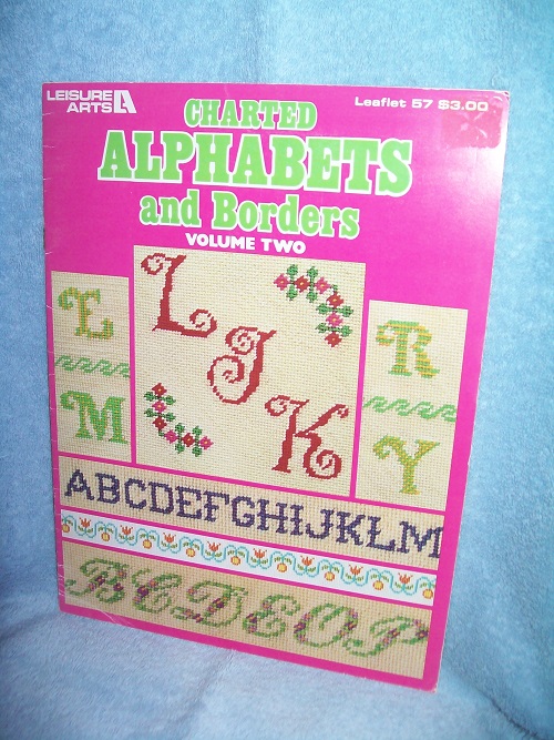 Leisure Arts, Little Rock, AR, 1975. Leaflet 57. Large stapled soft cover, unpaginated (approx. 12 pages). Some corner and spine edge wear, small creases; sticker residue at upper right corner. Binding sound with all pages secure. Interior clean and unmarked; two sheets of Four Iron-On Alphabets laid in. ‘This collection of charted alphabets and borders can be used for needlepoint or counted cross stitch, for latch hooked rugs, or cross-stitched on afghan crochet.’ (from Introduction)