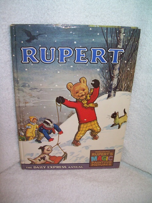 Beaverbrook, London, 1967. Hard cover, 115 pages. Very good; illustrated boards have light edge and cover wear; binding sound. Illustrated end papers; price intact; ownership section not filled in. Magic Painting Pictures have been completed. Pages clean and unmarked; colour illustrations; Alfred Bestall illustrator. The Daily Express Annual Including Rupert’s Magic Painting Pictures.
