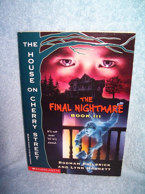 Scholastic, New York, 1995, 1st pr. ISBN 0-590-25515-0. Trade soft cover, 154 pages. Unread copy with light edge wear, some light impressions on rear, small lower rear corner bend; pages tanned. ‘The haunted house on Cherry Street has taken one victim: Jason and Sally’s baby-sitter. But that’s not enough. The house wants Jason and Sally, too. Just like that boy Bobby. He had an “accident.” A deadly one. This is Jason and his little sister’s last chance to get out alive. Because the house on Cherry Street is hiding some gruesome secrets. Secrets that will be kept … to the grave. Two kids, one haunted house. Let the final nightmare begin.’ (from rear wrap)