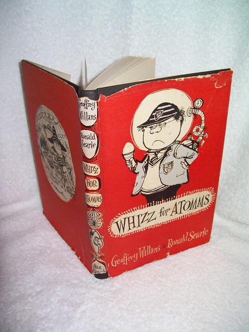 Max Parrish, London, 1956, 1st/1st.  Hard cover, 104 pages.  Black boards with gold lettering and decoration on spine; binding sound; upper corners and spine ends very lightly pushed.  Dust jacket with price intact has edge and cover wear, some tears and losses; age-toning/spots and soil.  Book interior clean and unmarked; age-spotting on outer page block and a few spots within.  ‘A guide to survival in the 20th century for fellow pupils, their doting maters, pompous paters and any others who are interested’ (from title page)