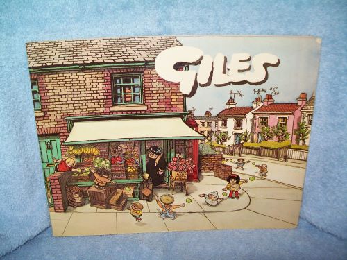 Beaverbrook Newspapers, London, 1974. Introduction by Mike Yarwood. Oblong soft cover, unpaginated; price intact. Wraps show some edge wear, light cover wear, creases and reading creases, colour chipping at upper front corner; binding sound with wrap firmly attached but staples visible both front and rear on page block. Interior clean and unmarked with tanning pages; black & white illustrations. ‘When you have finally thumbed through this Giles cartoon book I suggest you put it away for a few weeks and then go through it again. I did and I found myself laughing at the same cartoons a second time. I even noticed things I hadn’t spotted before.’ (from Introduction)