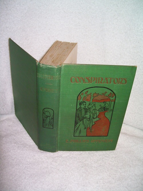 Copp Clark, Toronto, 1907; possibly First Canadian Edition. Hard cover, 320 pages. Green cloth with gilt lettering on front board, embossed decoration in black, red and gold; black embossed decoration on spine, gold lettering on spine mostly rubbed away; bit of a lean. Corners lightly bumped with some wear, bits of board exposed with a touch of fraying. Spine ends worn with tiny tears to cloth; shelf wear to bottom edges. Some foxing on outer page block and a few small spots on boards. No jacket. Prior owner’s name and date in pencil on front end paper. Front and rear paste-down papers have splits in gutters with some webbing exposed; binding still secure. Page 13/14 is detached but laid in with wear to edges; all other pages securely bound. Illustrated with 4 full page plates including Frontis. Top margin of p. 64 rubbed, possibly from erasure; some straightened corner bends. No other marks noted in interior. Age/fox spots throughout text but do not affect readability. Herbert Wrayson discovers a woman in his flat, going through his desk. She believed she was in the flat of his upstairs neighbor, Morris Barnes, who is murdered later that night. Wrayson and other members of his Club become intrigued with the murder and through amateur detective work, Wrayson discovers who the woman was, leading him to an encounter in France with her, a Baroness and spies.