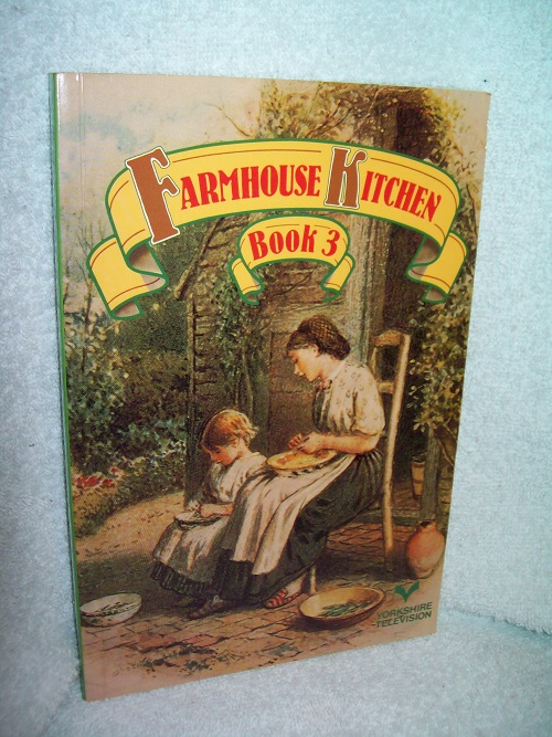 Yorkshire Television, London, 1982.  ISBN 0-946064-00-8.  Trade soft cover, 208 pages including Index.  Very good; wraps show light edge and cover wear, light creases and scratches; binding sound.  Interior clean and unmarked; black & white illustrations.  ‘Over 350 simple, nourishing recipes have been collected from all over the British Isles for this brand new volume in the best-selling Farmhouse Kitchen series.  Farmhouse Kitchen Book 3 is full of delicious, traditional country recipes as well as some more unusual dishes from the East, and covers everything from soups and sweets to Honeyed Welsh Lamb and Elderberry Chutney.’ (from rear wrap)