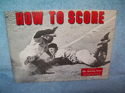 The Sporting News, St. Louis, MO, 1975. Oblong stapled soft cover, unpaginated. Very good; light edge and cover wear, sound binding. Interior clean and unmarked; staple holes in bottom fore-edge margins and wraps. Instructions on how to record the score in baseball with a special section of score sheets for 10 games.