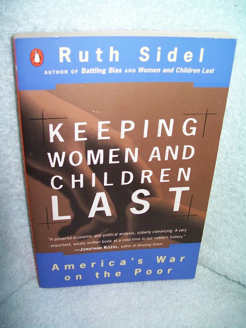 Penguin, New York, 1996, 1st pr. ISBN 0-14-024663-0. Trade soft cover, 232 pages including Notes, Bibliography and Index. Unread copy with a touch of edge wear; remainder mark on bottom edge; pages lightly tanned. ‘She shows how America, in its search for a post-Cold War enemy, has turned inward to target single mothers on welfare and how politicians have scapegoated and stigmatized female-headed families both as a method of social control and to divert attention from the severe problems that Americans face. Most important, she reveals the real victims of poverty – the millions of children who suffer from societal neglect, inferior education, inadequate health care, hunger, and homelessness. Citing statistics that are both terrifying and disturbing, Sidel delivers a chilling indictment of the current trends and political maneuvering that threaten to keep America’s poor women and children last.’ (from rear wrap)