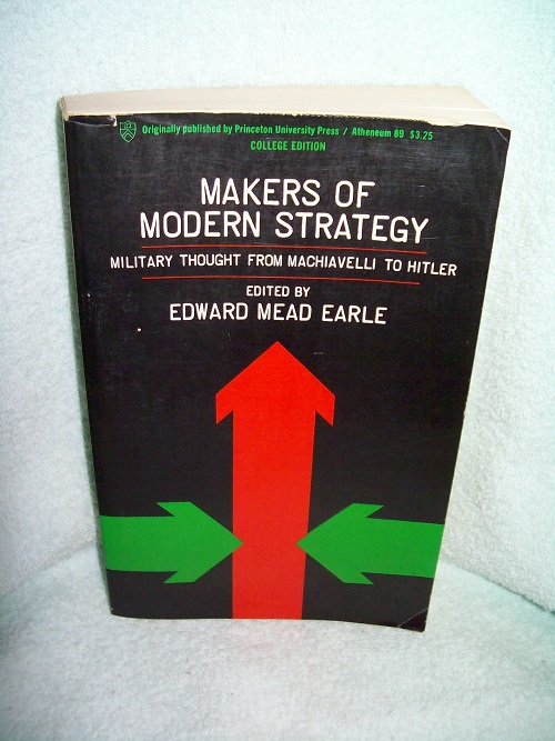 Atheneum, New York, 1969, 3rd pr.  Trade soft cover, 553 pages including Who’s Who of Contributors, Editor’s Note and Acknowledgments, Bibliographical Notes, and Index.  Good plus; wraps show some edge and cover wear, short edge tears, small corner creases, age-toning, small scrapes on spine.  Some soil on outer page block; prior owner’s name inked on verso of front wrap.  Interior clean and unmarked; black & white maps, table; pages lightly tanned.  ‘It is the purpose of this book ... to explain the manner in which the strategy of modern war has developed, in the conviction that a knowledge of the best military thought will enable Anglo-Saxon readers to comprehend the causes of war and the fundamental principles which govern the conduct of war.’ (from Introduction)