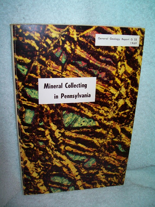 Pennsylvania Geological Survey, Harrisburg, 1969, Third Edition. G 33. Trade soft cover, 164 pages including Indices. Very good; some edge and cover wear to wraps, a few small spots on rear wrap, binding sound with reading crease along front spine edge. Interior clean and unmarked; illustrated throughout with black & white maps and drawings by Albert E. VanOlden. ‘This third edition contains seven new collecting localities not previously described. … More than 40 minerals and many more accurate mineral descriptions from the previously described localities also have been added. Several minerals new to Pennsylvania are included.’ (from Preface)