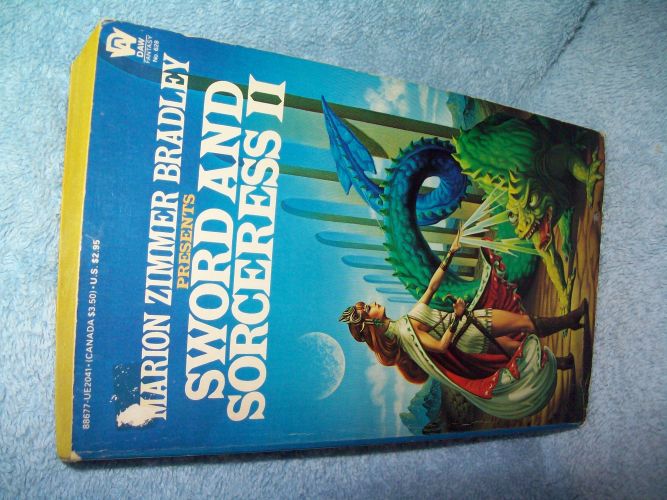 DAW, New York, 1985, 1st pr thus. ISBN 0-88677-041-6. MMPB, 287 pages. Wraps show some edge and cover wear, light creases, light reading crease along front spine edge, scar at upper left front wrap. Binding sound; interior clean and unmarked with tanning pages; very slight lean. ‘Here you will meet dragons and goddesses. Here you will venture forth with priestesses and assassins. Here be unicorns and mythical beasts of darkness. Here is adventure! Fifteen original tales by such writers as C. J. Cherryh, Diana Paxson, Phyllis Ann Karr, Charles Saunders, Jennifer Roberson, and more …’ (from rear wrap)