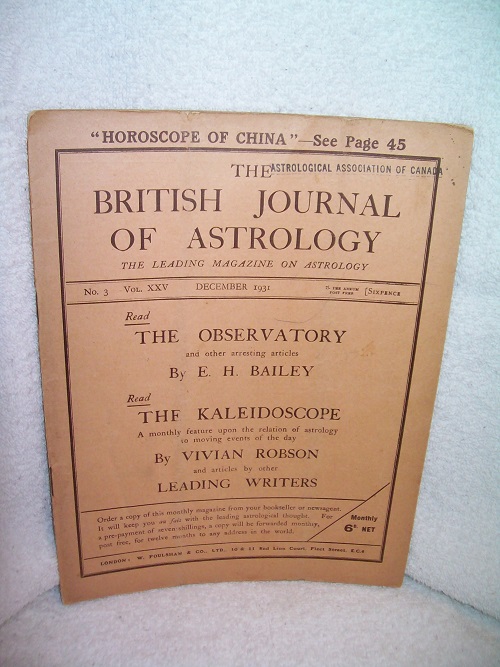 W. Foulsham, London, 1931. Paper cover stapled magazine, pages 41-60. Covers split at spine to top and bottom staples; some marks and soil, edge and cover wear; some creases, edge tears and small losses; Astrological Association of Canada stamped on front. All pages present, some edge wear, circular rust marks and impressions on a few pages; rust on staples. ‘The Leading Magazine on Astrology’