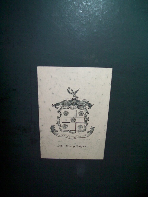 Prior Owner’s (John George Hodgins) bookplate affix to front inner board