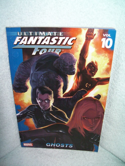 Marvel, New York, 2008, 1st pr thus. ISBN 978-0-7851-2898-4. Large soft cover, unpaginated (approx. 168 pages). Light edge and cover wear, remainder mark on bottom edge; sticker on rear wrap. Collects Ultimate Fantastic Four #47-53. ‘Susan Storm – the Invisible Woman – is headed toward a science conference in Siberia when her airplane is mysteriously shot out of the sky! With her survival in doubt, Reed Richards must abandon his completion of the equally enigmatic Cosmic Cube at its most crucial time to confront none other than the Ultimate Crimson Dynamo AND the Ultimate Red Ghost! Who shot down Sue – and can she survive the horrors hiding in the snow? Plus: Ultimate Thanos returns! What has placed the Baxter Building – and a huge chunk of New York City – under siege? Aliens are among us, hunting the greatest force in existence: the Cosmic Cube! And in the race to command this deadliest of weapons, treachery and overkill are the order of the day…even from former friends!’ (from rear wrap)