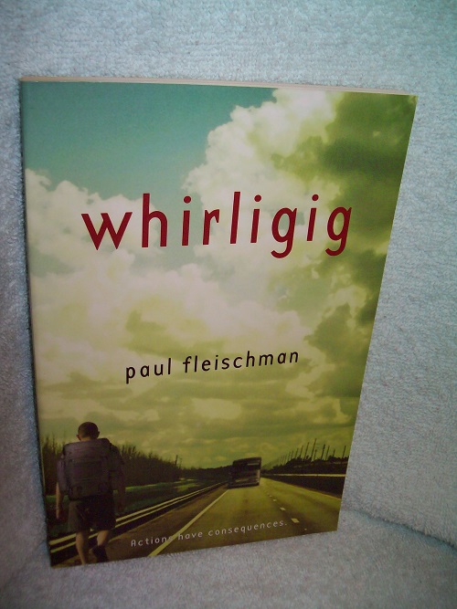 Square Fish, New York, 2010, 1st/1st thus.  ISBN 978-0-312-62911-3.  Trade soft cover, 133 pages plus Discussion Questions.  Unread copy, not remaindered.  ‘While traveling to each corner of the country to build a whirligig in memory of the girl whose death he causes, sixteen-year-old Brent finds forgiveness and atonement.’ (from summary on copyright page)