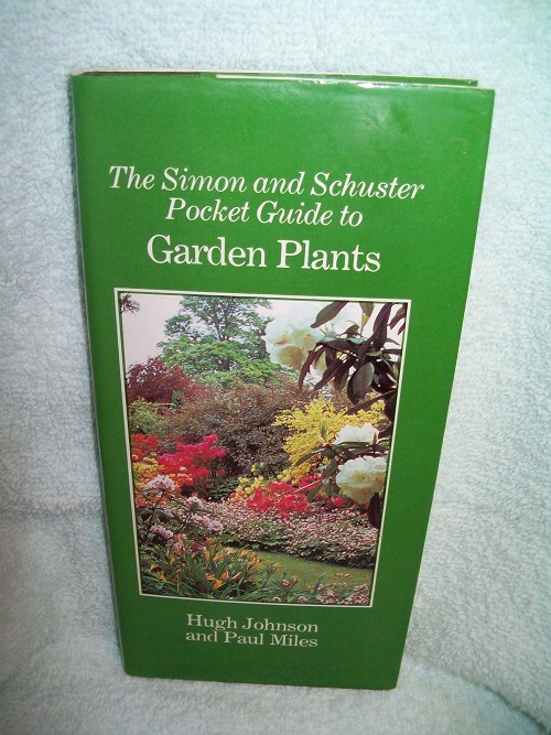 Simon and Schuster, New York, 1981.  ISBN 0-671-24841-3.  Narrow trade size hard cover, 192 pages including Index.  Very good; light edge wear, sound binding.  Dust jacket with price intact has light cover wear.  Interior clean and unmarked; colour photos.  ‘Nearly 2,000 plants are included in this amazingly comprehensive pocket guide to recognizing and selecting plants to suit your garden.’ (from front flap)