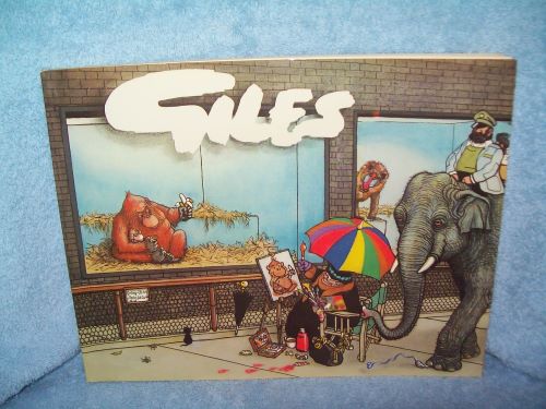 Express Books, London, 1982.  ISBN 0-85079-122-7.  Foreword by Terry Wogan.  Oblong soft cover, unpaginated; price intact.  Light edge and corner wear, reading crease along front spine edge; binding sound.  Interior clean and unmarked with lightly tanned pages; black & white illustrations.  ‘Like the rest of you, I’ve admired the man’s brilliance …  There’s more going on in a darkened corner of a Giles cartoon than most other artists achieve in a lifetime.’ (from Foreword)