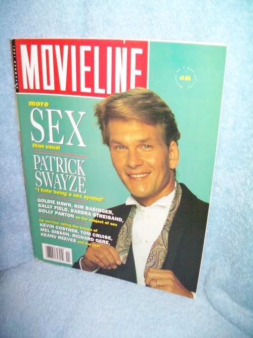 Movieline, Los Angeles, CA, Nov. 1991. Monthly magazine, Special Sex Issue, Patrick Swayze cover. Wraps have some edge and spine end wear, short edge tear at lower spine end, tiny v-loss at top edge of front and rear cover. Binding sound. Interior clean and unmarked. Interviews with Patrick Swayze, Goldie Hawn, Kim Basinger, Sally Field, Barbra Streisand, and Dolly Parton; feature piece on movie-going and voyeurism; more.
