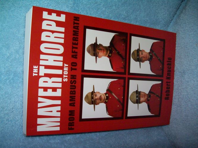 General Store, Renfrew, ON, 2009, 1st.  ISBN 978-1-897508-42-8.  Trade soft cover, 287 pages including Acknowledgements, Index and About the Author.  Appears unread with very light cover wear; binding tight; flat signed by author on half-title page; promotional bookmark laid in.  ‘In March 2005, near Mayerthorpe, Alberta, a demented loner with a long criminal record ambushed and murdered four RCMP members.  Then he committed suicide.  Four years later, two young men were sentenced to lengthy prison terms as parties to those murders.  This book is based on interviews with many of the principals involved.  It unravels the details of all phases of this story, which is one of the most violent and complex tales in the annals of Canadian crime.’ (from rear wrap)