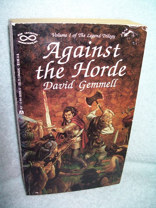 New Infinities, Delavan, WI, 1988, 1st ed/pr thus. Previously published in Great Britain as ‘Legend’. ISBN 0-441-00995-6. MMPB, 383 pages. Very good; wraps show some edge and light cover wear; scar on front corner from sticker removal; binding tight with some reading creases and a very slight lean; some colour chipping. Interior clean and unmarked with tanned pages. Author’s first book. ‘The fortress city of Dros Delnoch was built to be impenetrable, … But the barbarians of Nadir are not a normal enemy force. … and they number in the hundreds of thousands. Standing against this horde is a vastly outnumbered array of defenders, many of them domestic folk who have never before raised a weapon against another man.’ (from rear wrap)