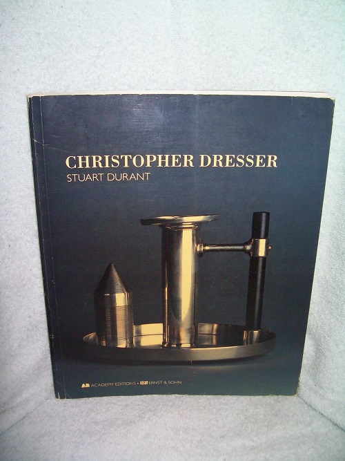 Academy Editions, London, 1993. ISBN 1-85490-187-7. Folio soft cover, 144 pages including Bibliography and Index. Good; wraps show edge and cover wear, some rubs and impressions, wear at corners and spine ends; reading creases. Binding sound; remainder mark on bottom edge plus a bit of soil. Price sticker on inner flap fold; interior clean and unmarked; colour and black & white illustrations/photos throughout. ‘The first modern product designer, Christopher Dresser (1834-1904) was a man of his times, among those champions of progress whom Ruskin dubbed “the steam-whistle party”. A botanist of considerable standing, Dresser that that the new discoveries of science provided inspiration for the designer. Continual demand for novelty was met by his inventive transcription of natural forms, from both plant and animal life. … Oriental, Egyptian, African, Pre-Columbian and Peruvian influences can all be found in his work, but their forms were used in a diffused and never purely imitative manner. With his understanding of manufacturing, Dresser knew that mass production called for a new approach to design. He saw strong design, which joined beauty and utility, as essential if British manufacturers were to remain ahead of competitors.’ (from front flap)