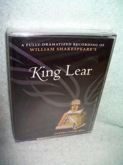 Penguin Audio, 1998, Arkangel Complete Shakespeare. ISBN 014180045-3. 2 audio cassette tapes with an approx. playing time of 2 ½ hours, still in manufacturer’s shrink wrap, small cracks on front case. Lear is played by Trevor Peacock and Gloucester by Clive Merrison, Penny Downie is Goneril, Samantha Bond is Regan and Julia Ford is Cordelia. Edgar is played by David Tennant, Edmund by Gerard Murphy and the Fool by John Rogan. Kent is played by Anton Lesser. ‘Lear, King of Britain, has three daughters; the hard-hearted Goneril and Regan and the good and gentle Cordelia. Wishing to ease himself of the burden of rule, he determines to divide his kingdom between them, giving the largest share to she who can say she loves him the best. Lear’s tragic lack of judgement and self-knowledge is paralleled by the blindness of the loyal Gloucester who is persuaded to reject his virtuous son Edgar in favour of the villainous Edmund. Plot and sub-plot combine to form a shattering drama of isolation and loss – one of Shakespeare’s mightiest achievement and one of the greatest tragedies in the literature of the world.’ (from rear case)