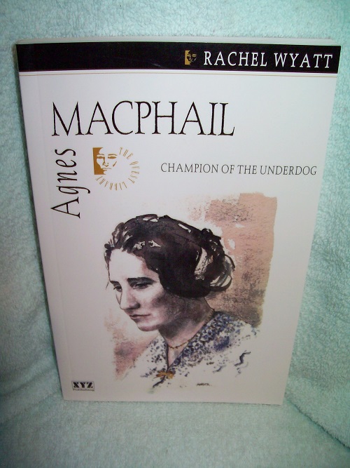 XYZ Publishing, Lantzville, BC, 2000, 1st paperback pr.  ISBN 0-9683601-5-7.  Trade soft cover, 166 pages including Chronology, Sources and Index.  Unread copy; black & white frontis and photos.  ‘Agnes Macphail was a champion of underprivileged Canadians.  She fought for the rights of farmers, for prison reform, for social programs, for peace.  She blazed a trail for women in politics in Canada and worked all her life for equality.  By her own example she inspired other women.’ (from rear wrap)