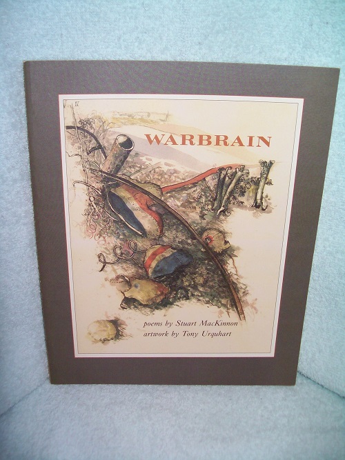 Penumbra, Canada, 1994, 1st. ISBN 0-921254-65-2. Large soft cover, 76 pages. Very good; wraps show light edge wear, sunning on rear wrap with small moisture mark at lower edge; binding sound. Interior clean and unmarked. Black & white illustrations by Tony Urquhart. ‘… based on his childhood memories of the wartime experiences related to him by family members who were survivors of the First and Second World wars. The first two sections re-enact trench and air warfare, as exemplified by the battle of Vimy Ridge and the bombing of Dresden. The third section, “Reconstruction,” meditates on the after-effects of these events on family, culture and society, and on the way in which the wars of this century have shaped Canada’s national character and destiny.’ (from rear wrap)