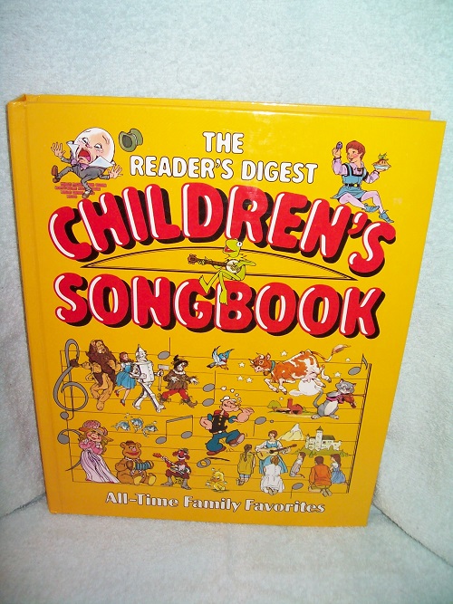 Reader’s Digest, Pleasantville, NY, 1985, 1st.  ISBN 0-89577-214-0.  Hard cover with internal metal binding, 252 pages.  Very good plus; very light corner and spine end wear; prior owner’s name and date on FEP; remainder of interior clean and unmarked.  131 songs selected from:  Muppets Madness and Some Hits from Sesame Street; Songs From Some Favorite Movies and Shows; Tunes From Cartoons; Animal Fare; Absolute Nonsense; Funny Songs that Were Popular Long Ago; Folksingers’ Concert Favorites; Songs Children Sing in Many Countries; Party Dances; Good Things to Know About; Nursery Rhymes; More Nursery Rhymes with Action; Songs that Go Round and Round, and Songs for Happy Days and Holidays.