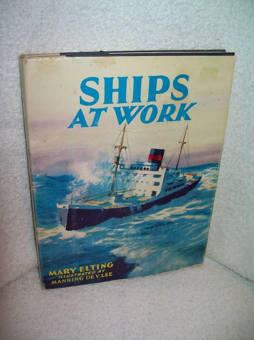 Harvey House, New York, 1962. Hard cover, 93 pages including Index. Very good; faded glass mark on front board, scattered foxing on top page block, binding sound. Price-clipped dust jacket shows some edge and cover wear, short edge tears, some foxing and small stains; old glass mark on front panel; crease on front flap. Illustrated end papers; interior clean and unmarked. Colour and black & white illustrations by Manning De V. Lee. ‘Freighters, tankers, ferries, tugs, and the many unusual ships that do highly specialized jobs are shown in action. The work, the sailor’s language, the kind of life a seaman lives, the use of inventions like radar all contribute to this fascinating picture of SHIPS AT WORK. The proudest of ocean liners are pictured and described as well as the humblest dugouts and sailing vessels of ancient times.’ (from front flap)