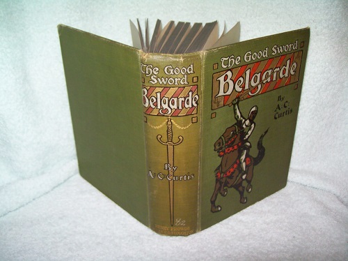 Henry Frowde/Hodder and Stoughton, London, 1909, believe 1st UK Edition. Hard cover, 350 pages plus 16-page publisher’s catalogue. Boards show some edge, corner and spine end wear, board exposed at tips, short tears to cloth at spine ends; spine a bit sunned with ‘82’ marked in white at lower spine end; binding cracked with all pages secure except one detached plate laid in. Outer page block has a dark tinting. Interior pages unmarked with occasional smudge/age spot; only a few very short edge tears. All colour illustrations present plus black and white map. Also laid in is a copy of one of the illustrations in the book with a synopsis of the plot from the publisher. Illustrated in colour by W. H. C. Groome, whose name appears on each illustration. ‘This is the story of Arnold Gyffard and John Wotton, pages to Sir Philip Daubeney, in the days when Prince Lewis the Lion invaded England and strove to win it from King John. It ells of their journey to Dover through a country swarming with foreign troops, and of many desperate fights by the way. In one of these Arnold wins from a French knight the good sword Belgarde, which he uses to such good purpose as to make his name feared.’ (from publisher’s ad laid in)