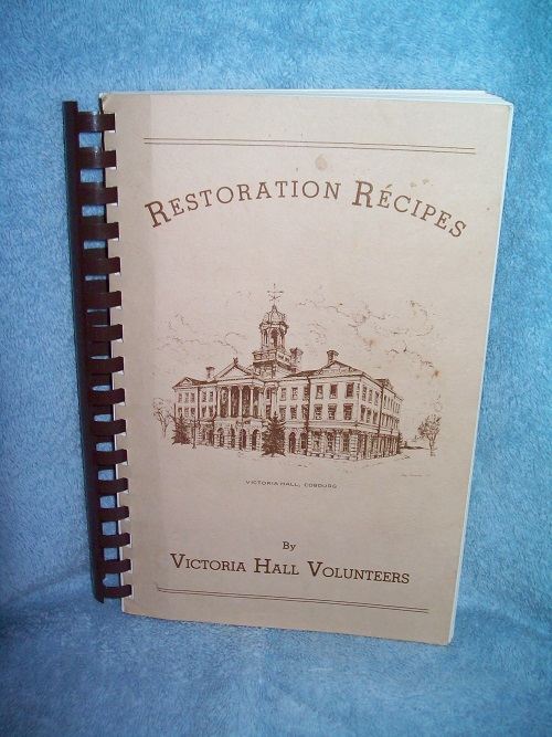 Cobourg, ON, 1982. Plastic comb binding with card covers; each section separately paginated with index. Covers have a few small stains and age spots, vertical crease on front cover; interior clean and unmarked; no flaws to comb. Community cook book published in support of the restoration of Victoria Hall, Cobourg, Ontario.