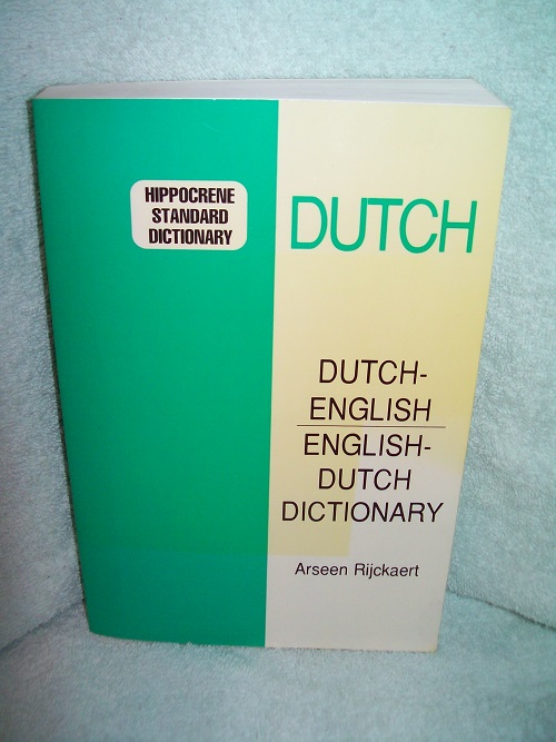 Hippocrene, New York, 1999, 2nd pr. ISBN 0-7818-0541-4. Larger trade soft cover, 578 pages plus ads. Very good; a bit of edge and cover wear; binding sound; remainder mark on bottom edge and ink notation on title page; remainder of interior clean and unmarked. Hippocrene Standard Dictionary, including over 35,000 entries, pronunciation for each entry, basic pronunciation chart for the Dutch language, chart for English irregular verbs and list of abbreviations.