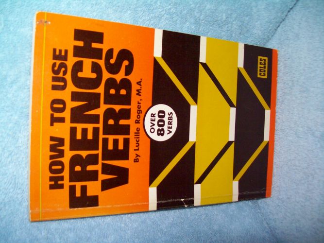 Coles, Toronto, 1974.  Trade soft cover, 154 pages including Index, followed by blank pages for notes.  Wraps show some edge and cover wear, small corner creases, reading creases along front spine edge; sticker residue at upper right corner; binding sound.  Prior owner’s name on verso of front wrap; remainder of interior clean and unmarked.  ‘The French verb has fourteen tenses, seven simple, and seven compound tenses … The following pages provide verb charts for over 800 French verbs, each being shown in the tenses listed above.’ (from Introduction)