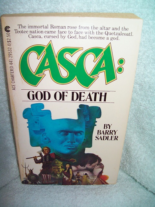 Ace Charter, New York, 1982, reprint. ISBN 0-441-29532-0. MMPB, 218 pages. Very good; wraps show light edge and cover wear, scrape to spine head and lower rear edge near spine; light reading creases; some age-toning; binding tight. Interior clean and unmarked with tanned pages; age spotting on outer page block. ‘He was cursed by Jesus on Golgotha – condemned to immortality and the life of a soldier, until the Second Coming. The immortal Roman rose from the altar and the Teotec nation came face to face with the Quetzalcoatl. Casca, cursed by God, had become a god.’ (from cover)