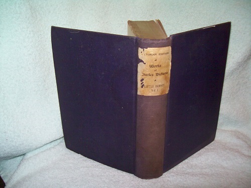 Nathan Simon, New York, no date but believe circa 1900. Hard cover, with Book The First-Poverty being chapters 1 to 36 containing pages 1 to 446, and Book The Second-Riches being chapters 1 to 17 containing pages 447 to 654. Purple cloth over boards with chipped paper label on spine; edge, cover, corner and spine end wear, bit of board exposed at 3 corners and lower rear edge, small tears to cloth at spine top; some spots, fading and damp mark to cloth. Binding with headbands, all pages secure; top edge gilt showing a bit of waviness from water, fore and bottom edges untrimmed (some pages have not been opened). Old water marks at some top margins, not affecting readability; occasional age spot. Illustrations by “Phiz” (H. K. Browne); all illustrations present with printed tissue guards intact. One of the first thousand impressions from a new set of plates, with publisher’s facsimile signature.