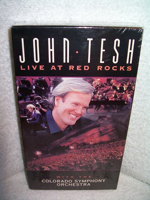 GTS Records, 1995, VHS Video Tape, NTSC, Colour, Digital Audio, Stereo, approx. playing time of 1 hour 50 minutes, still in shrink wrap. “With award winning pianist John Tesh’s 8 piece ensemble joined by the 70 piece Colorado Symphony Orchestra, the audience of 8,000 at Red Rocks witnessed a one of a kind event. … video contains: 19 songs in 72 track digital sound (3 additional songs not included on the album). *Exclusive ‘Making of Live at Red Rocks’ behind the scenes footage.” (from rear box)