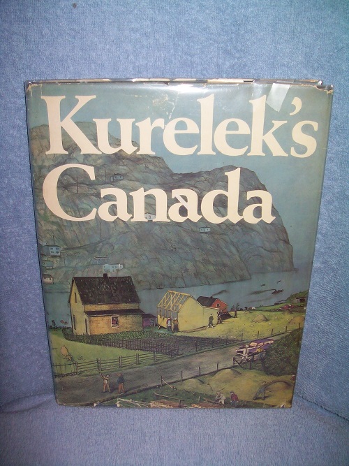 Canadian Heritage Library, 1975.  ISBN 0-88932-009-8.  Folio hard cover, 127 pages including art sources.  Good plus; blue cloth with gilt lettering on spine, binding sound with headbands.  Dust jacket, in protective plastic taped over board edges, has edge wear, some tears and small losses.  Gift inscription on front end paper; remainder of interior clean and unmarked.  Illustrated in colour and black & white.  ‘Kurelek’s Canada captures magnificently a very personal view of Canada; the landscape, the people, their work, and their pleasures. ...  All the pictures are regional in setting but universal in the feeling they evoke. ... The whole is a harmonious blend of one man’s love of humanity and pride in his country.’ (from front flap)