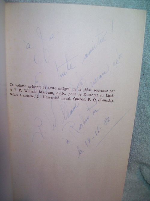 Editions P. Lethielleux, Paris, 1973. ISBN 2-249-60065-1. Trade soft cover, 301 pages including Bibliography, Index, and Contents. Very good; light edge wear, some scrapes and light scratches; binding tight. Black & white photo plate frontis of de Sales; interior clean and unmarked; inscribed to prior owner by author and signed. Text in French. Biography of Francois de Sales, noting the various influences on his life resulting in his philosophy of optimism, pure love, and his spiritual progress.