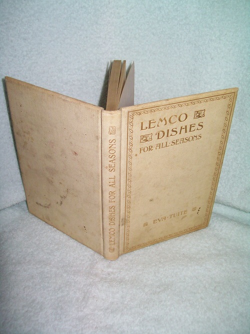 Lemco, London, no date, but prior owner’s name and date on title page reads Nov 04. Hard cover, 127 pages including blank pages for your recipes and Index. Cream coloured buckram with gilt lettering and decoration on front board and spine, all edges gilt. Boards show soil and stains, corner wear; binding sound with headbands; no jacket. Interior pages unmarked with some age spotting; a few pages show biopredation in margins; black & white illustrations. ‘Containing 208 Recipes for Articles in Season Each Month, Together with Invalid Dishes, Breakfast Dishes and Sweets, and 75 Menus for Breakfasts, Lunches, and Dinners’ (from title page)