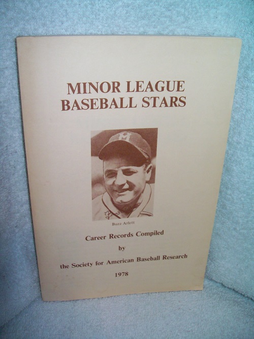 Society for American Baseball Research, Springfield, VA, 1978. Trade soft cover, 125 pages. Very good; light edge and cover wear, some age spotting, light creases, faded water drops. Binding sound; interior clean and unmarked; black & white photo illustrations. A compilation of career records of minor league stars.