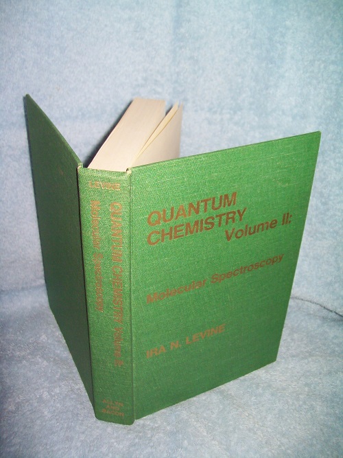 Allyn and Bacon, Boston, 1970, believe First. Hard cover, 477 pages including Appendix, Selected Bibliography, Answers to Selected Problems and Index. Very good; green boards with gold lettering on front and spine, light corner and spine wear, binding sound with headbands; small spot on rear board. Some small soil spots on outer page block. No jacket. Interior clean and unmarked. Part of the Allyn and Bacon Chemistry Series. Contents: Chapter 1: Electronic Structure of Polyatomic Molecules; Chapter 2: Time-Dependent States and Spectroscopy; Chapter 3: Vibration and Rotation of Diatomic Molecules; Chapter 4: Rotation of Polyatomic Molecules; Chapter 5: Vibration of Polyatomic Molecules; Chapter 6: Magnetic Resonance Spectroscopy, and Chapter 7: Group Theory and Matrices. ‘This is the second volume of Quantum Chemistry, a text for advanced undergraduate and first-year graduate students in chemistry. …This text takes into account the limited mathematics and physics background of the average chemistry student.’ (from Preface)