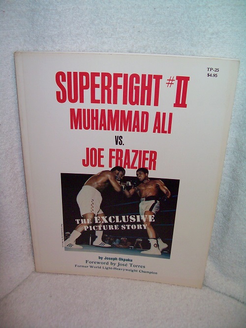The Third Press, New York, 1974, 1st printing stated. ISBN 0-89388-165-1. Large trade soft cover, 126 pages. Very good; illustrated wraps have light edge and cover wear, tiny corner bends, faint creases at upper rear wrap near spine. Binding sound. Interior clean and unmarked; illustrated throughout with black & white photos. Recap of Superfight I, Joe Frazier vs. George Foreman, Muhammad Ali vs. Ken Norton, and Superfight #II between Muhammad Ali and Joe Frazier told in text and photographs.