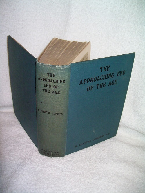 Hodder & Stoughton, London, no date, believe 14th ed., New Edition edited and revised by E. H. Horne.  Hard cover, 372 pages including Appendices and Index.  Green buckram with black lettering on front and spine, spine sunned, some edge wear, a few spots on boards.  Corners have some wear with bits of board exposed, spine ends bumped with very short tears to cloth.  Binding cracked in spots with all pages secure.  Possibly part of jacket flap describing content pasted to FEP; a few small spots on fore-edge page block and inner margins of a few pages; remainder of interior clean and unmarked.  ‘A standard work and thorough treatment of Scripture prophecy relating to the premillennial Advent of Christ.  “The solid foundation and true principles which the book lays down are of the greatest possible value,” says the Editor.  “It is a masterly book, … One of the most valuable and exhaustive books on prophecy that have been written:-English Churchman.’ (from FEP)