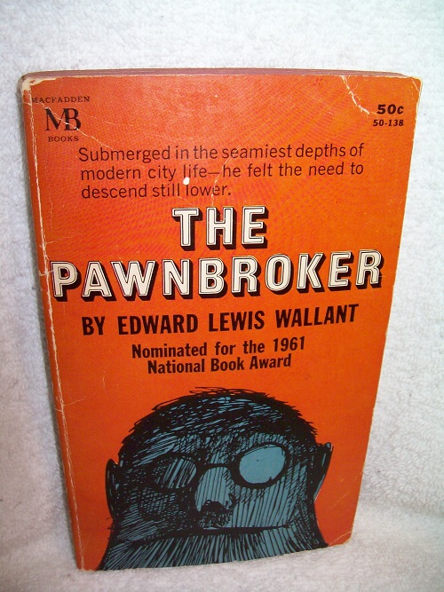 MacFadden, New York, 1962, believe 1st pr thus; # 50-138.  MMPB, 206 pages.  Wraps show edge and cover wear, some creases and reading creases, small splits and tiny losses at spine head; old water marks on rear wrap; binding sound.  Interior clean and unmarked with tanned pages; a few small spots on inner front wrap and FEP, small tear at top edge of FEP.  ‘… tells the story of Sol Nazerman, a concentration camp survivor who suffers flashbacks of his past Nazi imprisonment as he tries to cope with his daily life operating a pawn shop in East Harlem.’ (from Wikipedia)