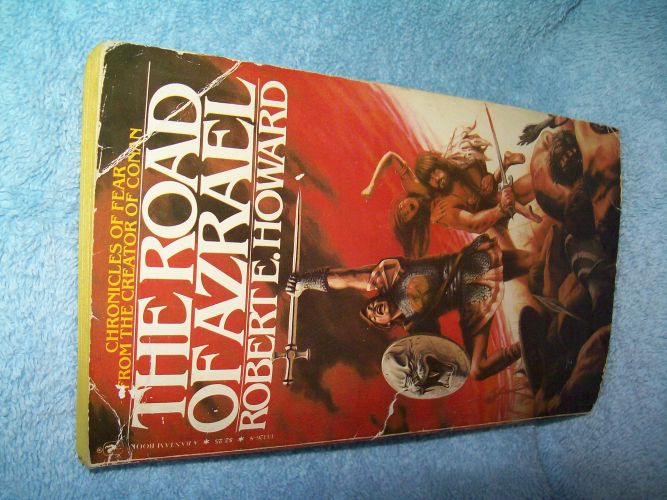 Bantam, New York, 1980, 1st pr thus; former library book. ISBN 0-553-13326-8. MMPB, 175 pages. Wraps show edge and cover wear, creases and corner creases, reading creases on spine and along front spine edge. Score near mid spine edge which has penetrated to first 50 pages, but does not affect readability. Binding sound. One straightened dog ear; library stamp on title page, pocket at rear, remainder of interior clean and unmarked with tanned pages; faded moisture mark at lower fore-edge page block; bow to book. Stories Include: Hawks over Egypt, The Track of Bohemond, Gates of Empire, The Road of Azrael, and The Way of the Swords. ‘Ride down the Road of Death on a nightmare stallion, steal into Persian camps by moonlight where beautiful women lie captive in dazzling tents. Let your ears ring with the clashing swords of Moors and Visigoths, your eyes feast on the horror-stricken faces of your fallen foes. Stand on a lonely beach at midnight waiting for a Viking vessel to carry you miles over oceans alive with serpents and thrashing monsters. Ride, if you dare, down the Road of Azrael!’ (from rear wrap)