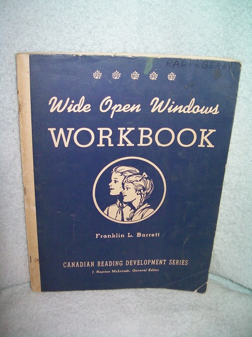 Copp Clark, Vancouver, 1953. Large soft cover, 160 pages. Vintage educational workbook for the Wide Open Windows reader. Wraps have edge and cover wear, some stains; prior owner’s name at top front wrap. Pencil erasures on some pages; some age spots/stains in margins and gutters; text very readable. The workbook provides exercises for comprehension, reading, silent reading, new vocabulary, making inferences, plus ten tests of speed and comprehension.