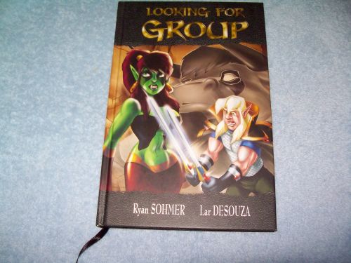 Blind Ferret, Montreal, 2012. ISBN 978-1-926838-21-2. Hard cover, unpaginated. Appears unread; just a touch of cover wear; binding tight with black ribbon marker. Signed by Ryan Sohmer and Artist Lar deSouza. “You know that feeling you get when you’re trying to change the world and an evil warlock steps into your life and introduces you to a minotaur-looking dude and his never-to-be-explained green daughter who then proceed on an adventure that ends with a lot of death and humor? No? Well this is a bunch of that. Welcome back to the world of Looking For Group.” (from rear board)