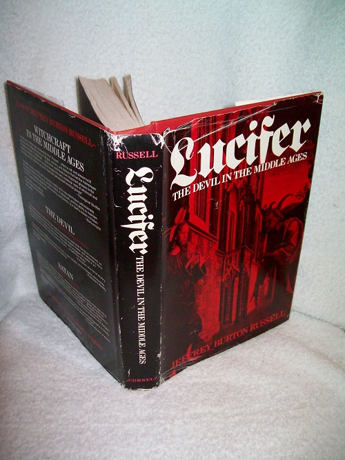 Cornell University Press, Ithaca, NY, 1984.  ISBN 0-8014-1503-9.  Hard cover, 356 pages including Essay on the Sources, Bibliography, and Index.  Red boards show light edge wear, corners and spine ends lightly bumped; binding sound with headbands and a very slight lean.  Dust jacket shows edge and cover wear, creases, rubs, short tears and small losses; repaired tears on verso.  Prior owner’s name inked at top of title page; remainder of interior clean and unmarked.  Black & white illustrations throughout.  ‘Drawing on an impressive array of sources from popular religion, art, literature, and drama, as well as from scholastic philosophy, mystical theology, homiletics, and hagiographies Russell provides a detailed treatment of Christian diabology in the Middle Ages.  Although he focuses primarily on Western Christian thought, Russell also includes, for the sake of comparison, material on the concept of the devil in Greek Orthodoxy during the Byzantine period as well as in Muslim thought.’ (from front flap)